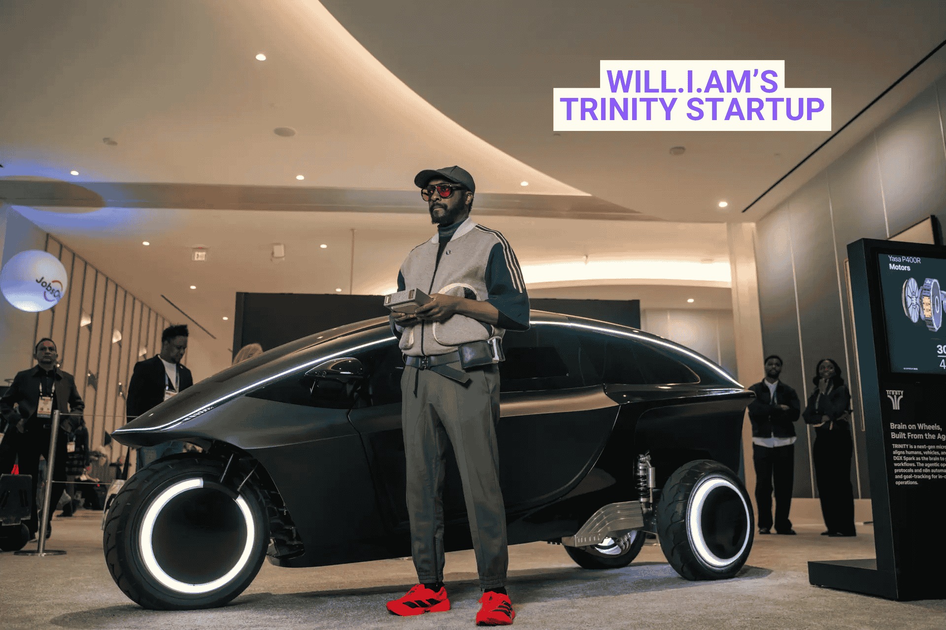 will.i.am debuted Trinity at CES 2026, a tilting electric 3-wheeler with Nvidia AI that manages your calendar and errands while you drive. Built with West Coast Customs, Segway inventor Dean Kamen's self-balancing tech, and 0 - 60mph in two seconds, this single-seater launches on Kickstarter with $30,000 price tag and August 2027 delivery. Manufacturing stays local in Boyle Heights.